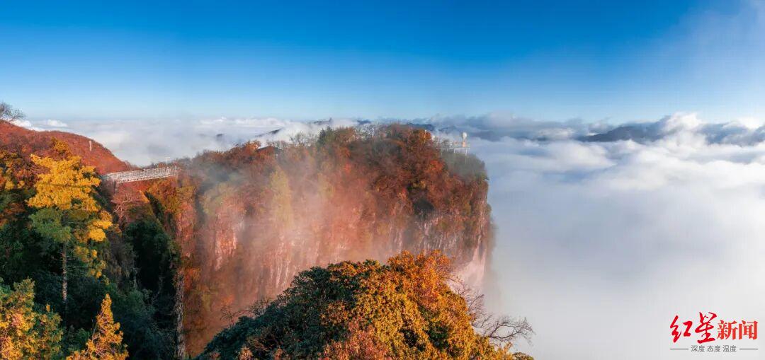 汉中龙头山国际旅游度假区日前对外宣布:“龙头山赏秋+观云海的黄金时段已到!这里藏着一整个秋天的浪漫。”据悉,霜降节气后昼夜温差大,龙头山景区也迎来了一年中的最佳彩林季。
